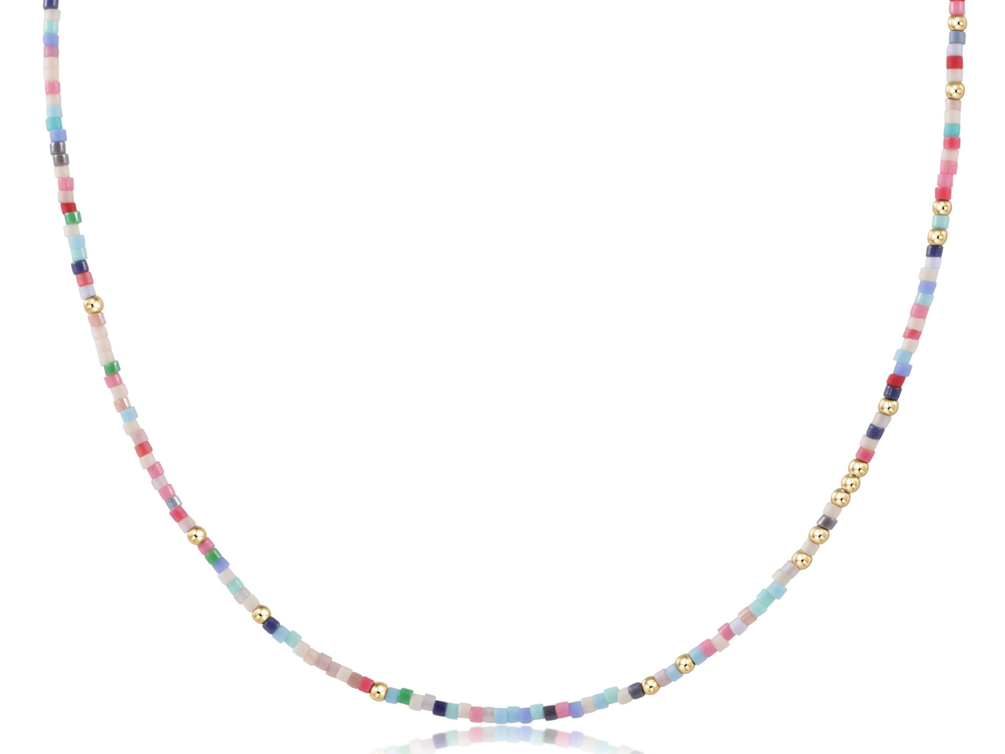 • Made with various colors of randomly mixed 2mm seed beads and 2mm 14k gold-filled beads