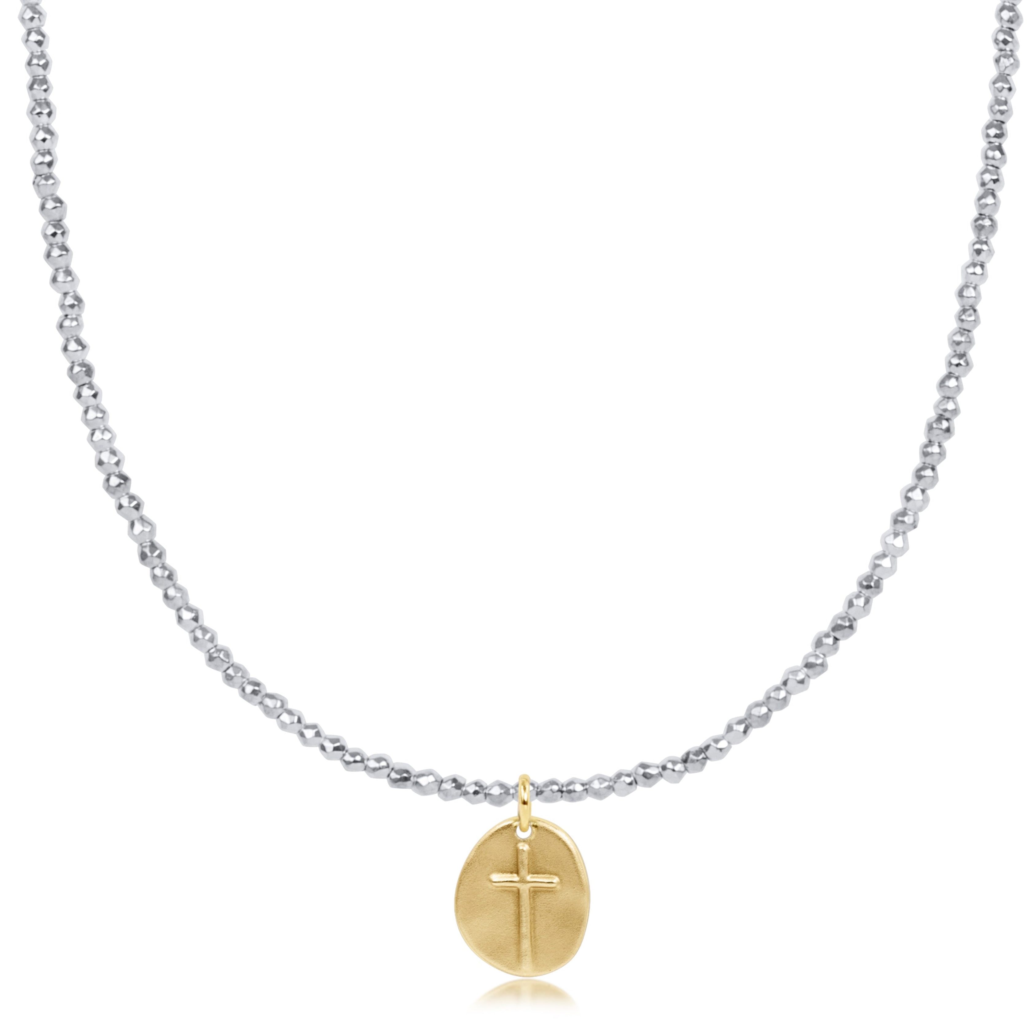 choker bright silver faceted hematite 2mm bead – inspire small gold charm