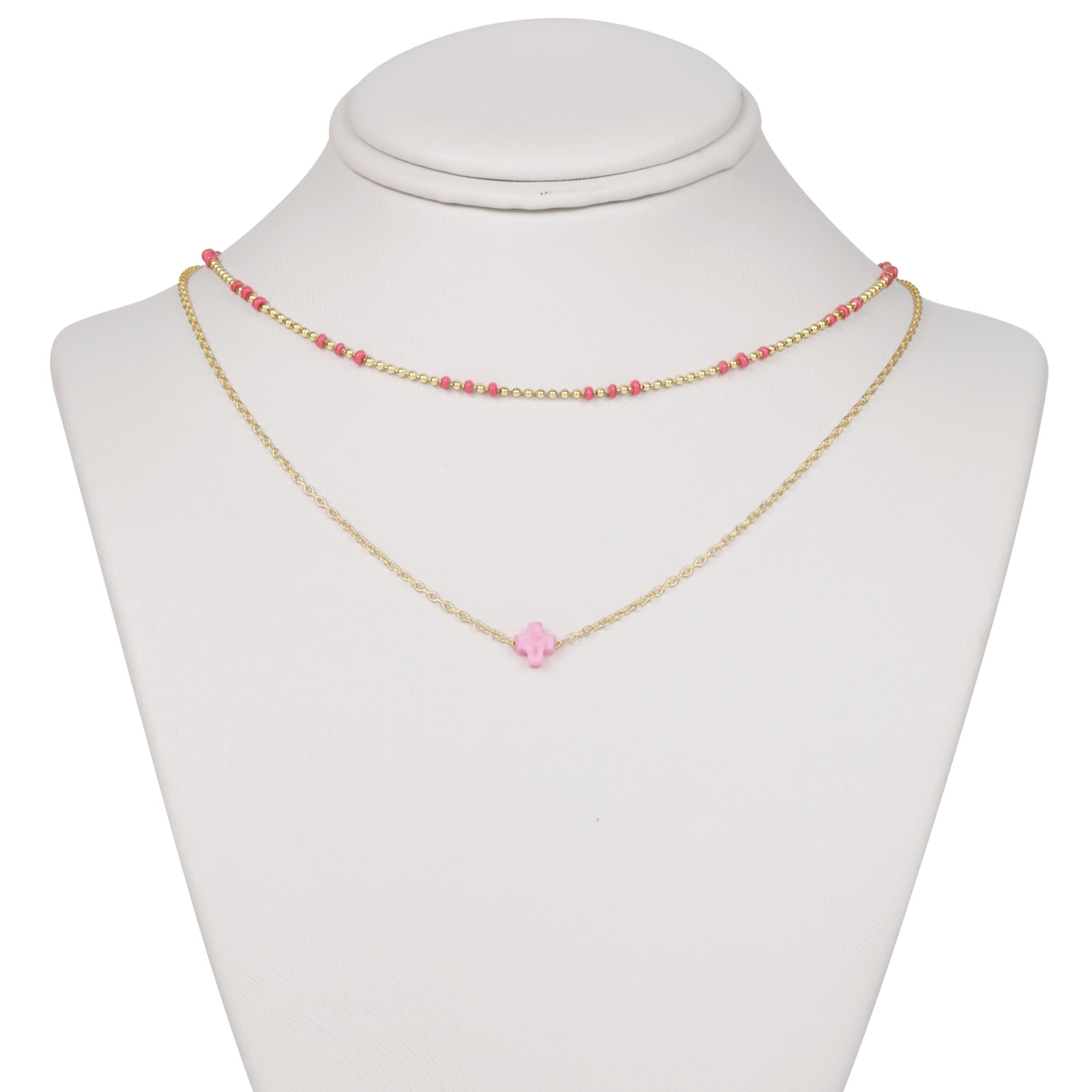 • Layers include: (1) 15 Choker Hope Joy – Bright Pink. (1) 16 Necklace Gold – Signature Cross Small Bright Pink